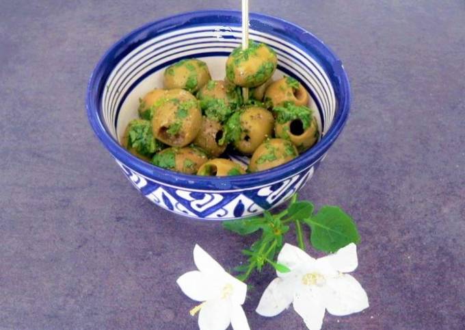 Olives vertes à l'huile d'Argan et coriandre instructions