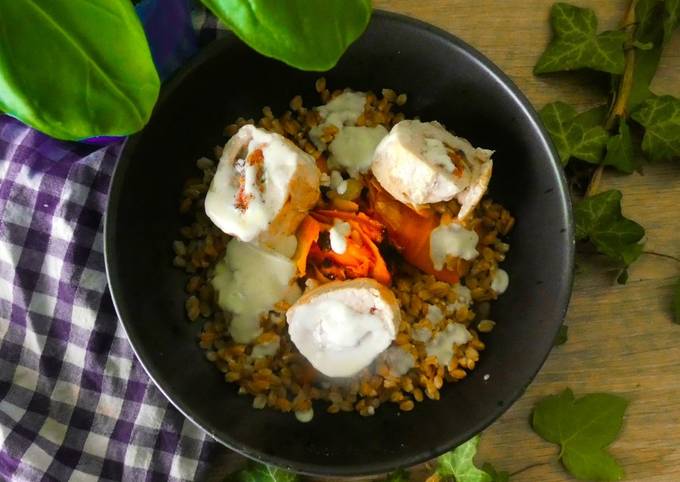 Ballottines de poulet aux tomates séchées basilic et champignon.